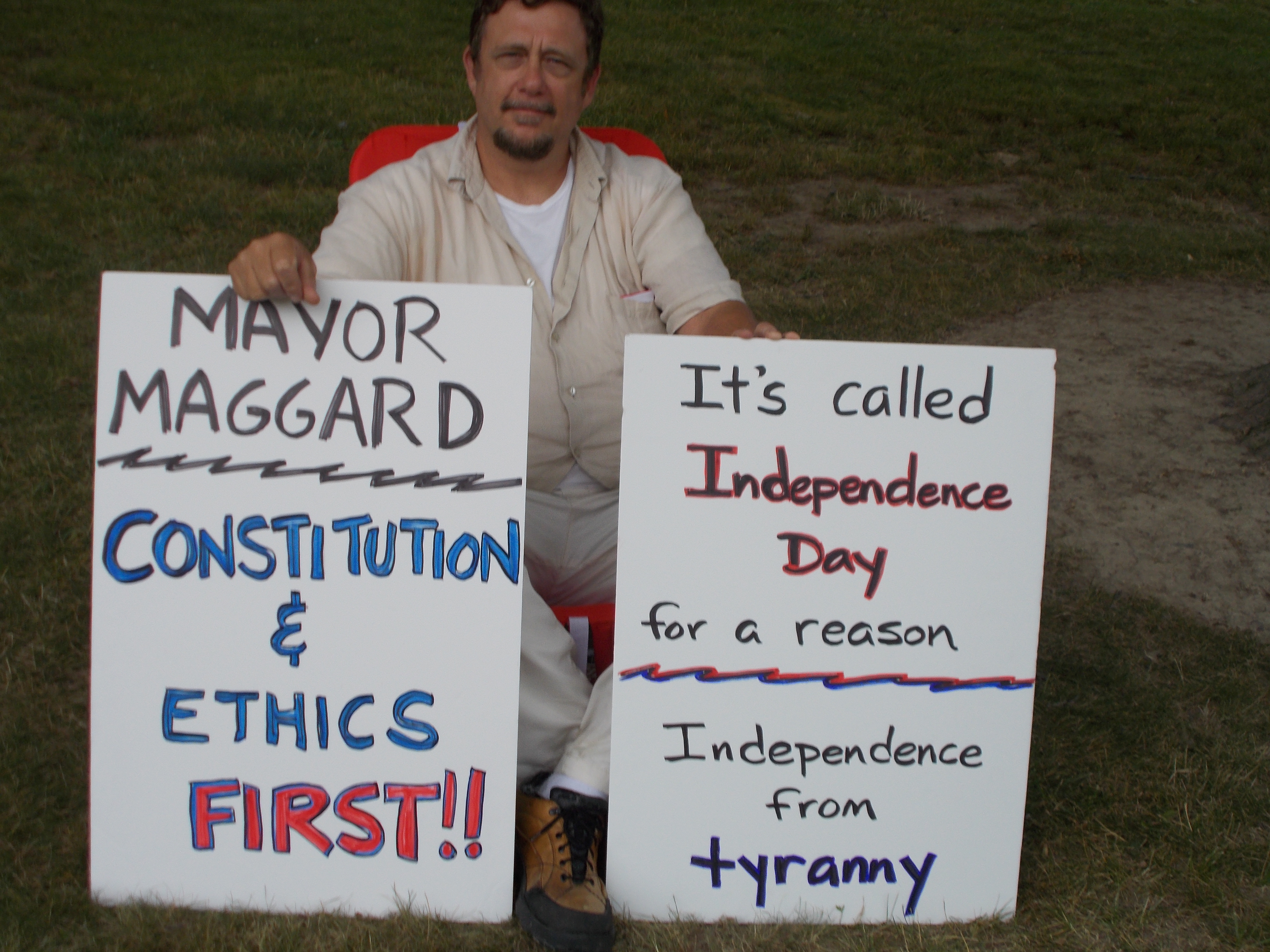 Through the election and into her administration, she consistently ignored conflicts of interest, denied citizens their civil rights and prized property values over the law of the U.S. Constitution. Also, again enforcing this attitude that if the citizens don’t like what she does they can hire (expensive) attorneys (which they can’t afford). When I rightfully protested over the summer of 2013 against her policies she called me a ‘performance artist’