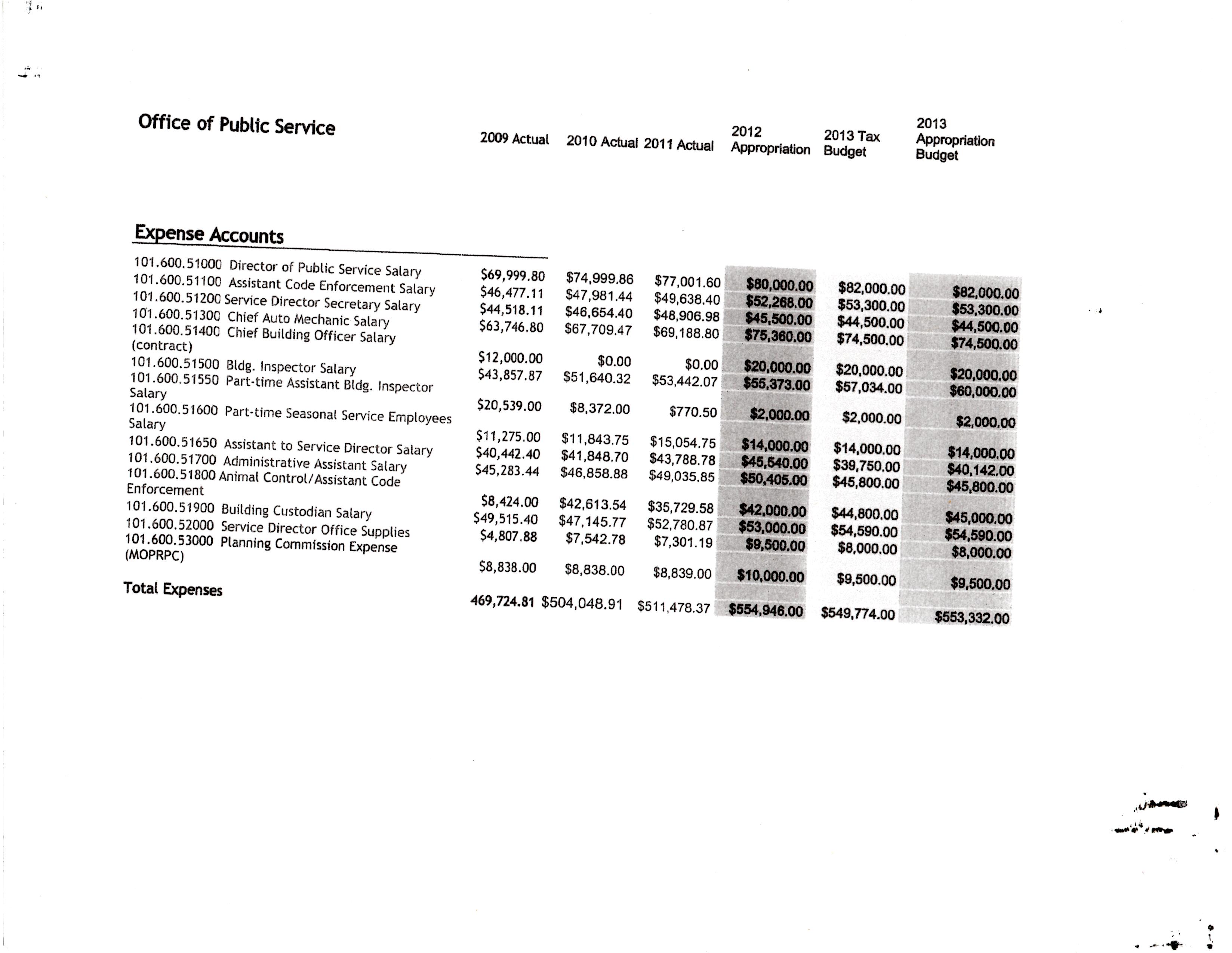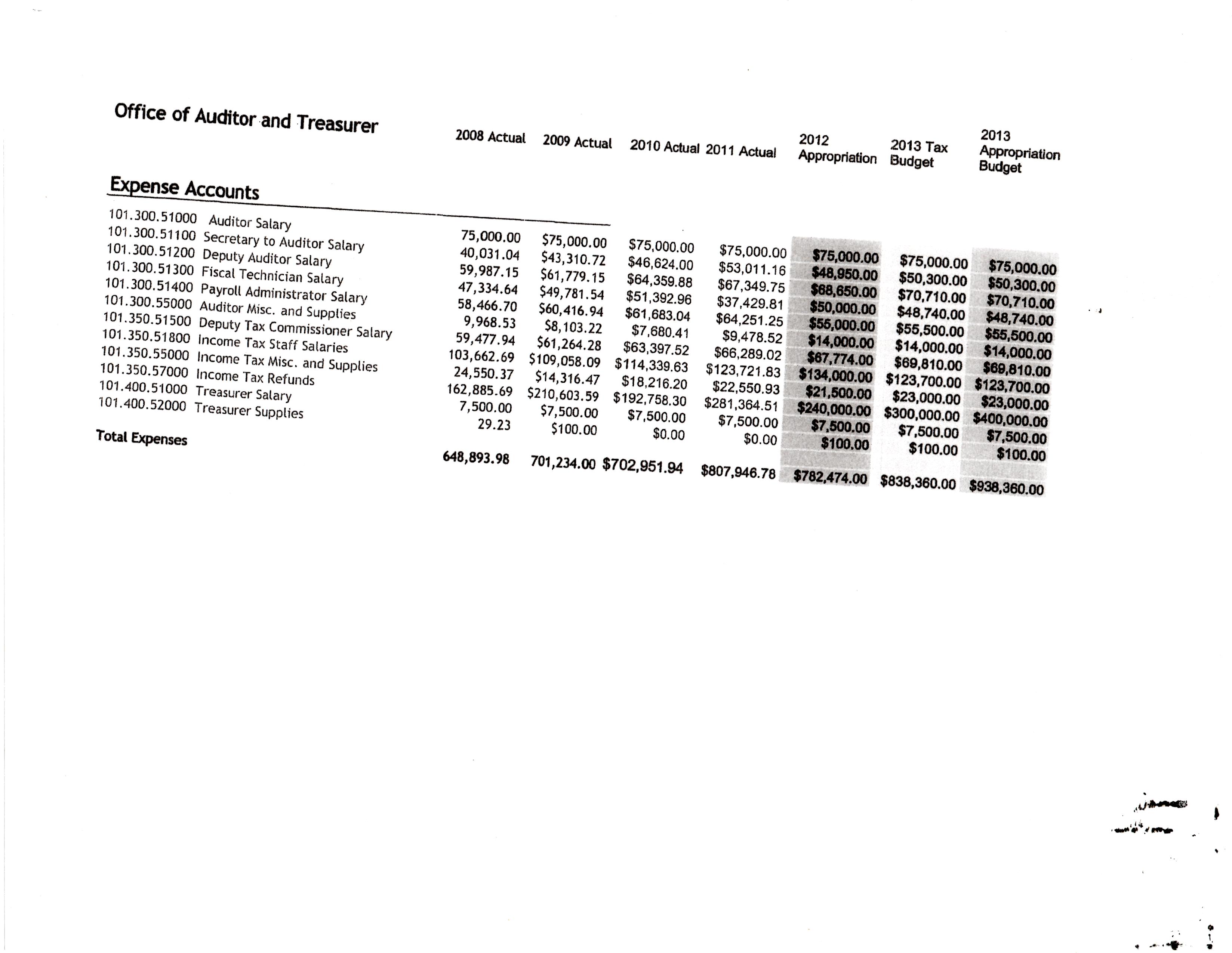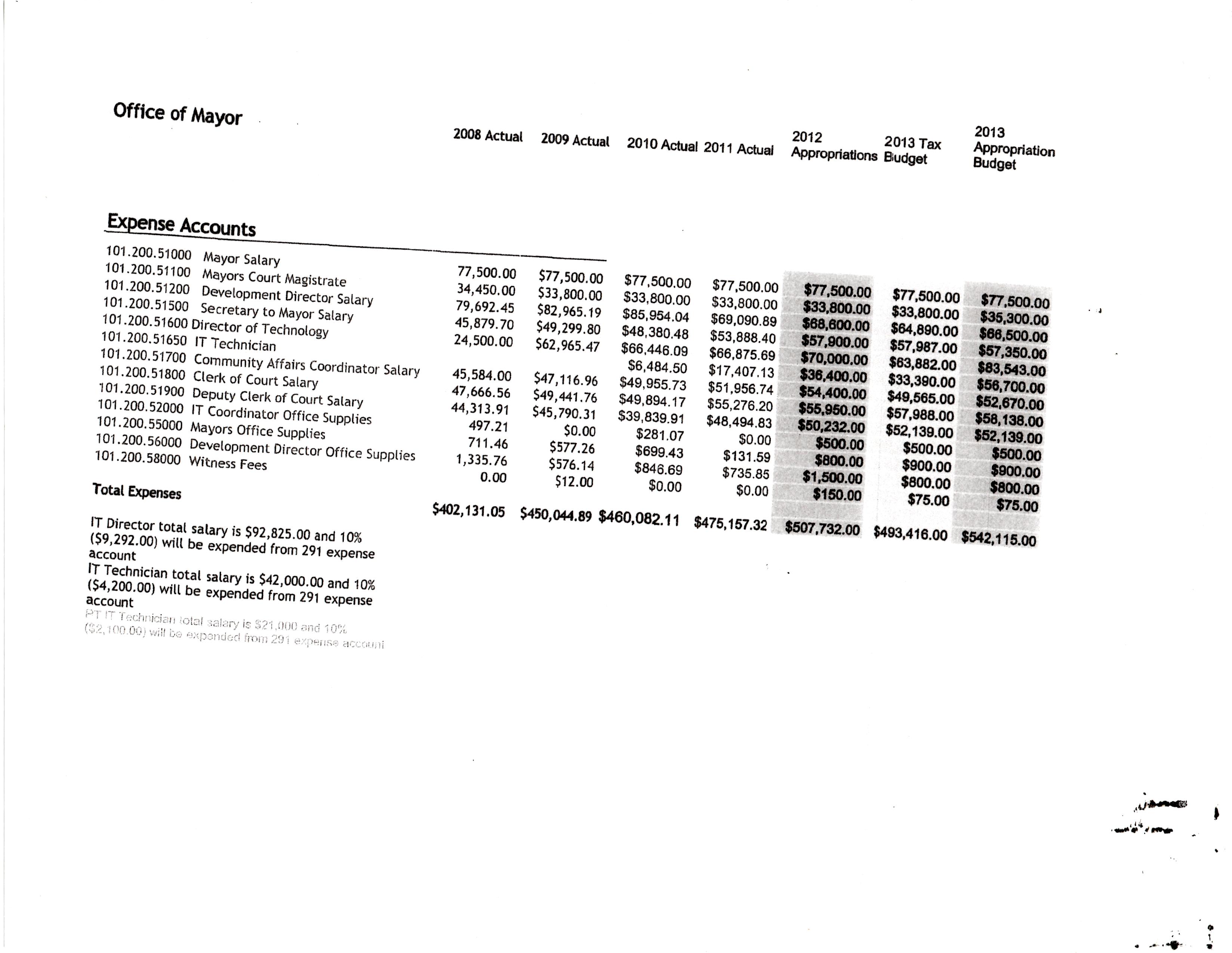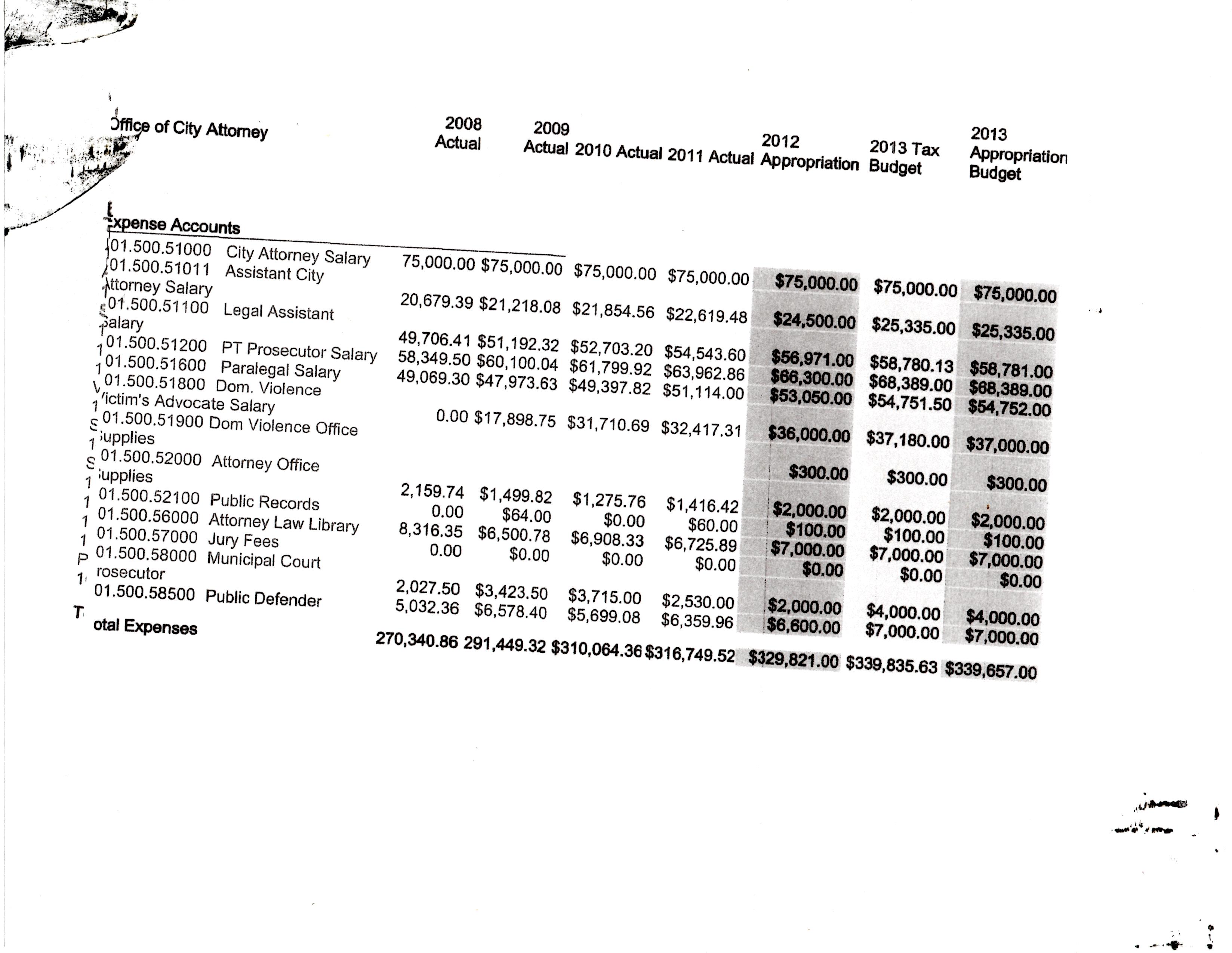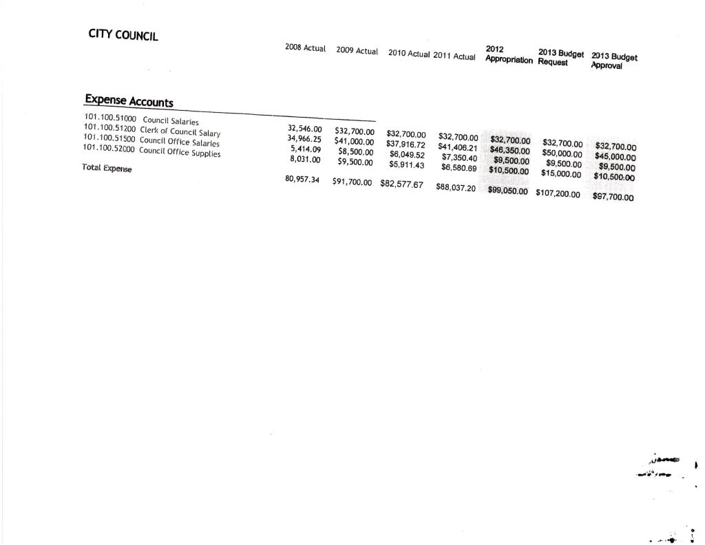 I’ll include every category of City Hall except Civil Service; there’s very little change in that and its not something anyone ever really cares about. Sometimes the sheets will include previous years and so those numbers will suffice instead of showing every single year. I’ll begin each category with the paperwork and then add my comments after the category.