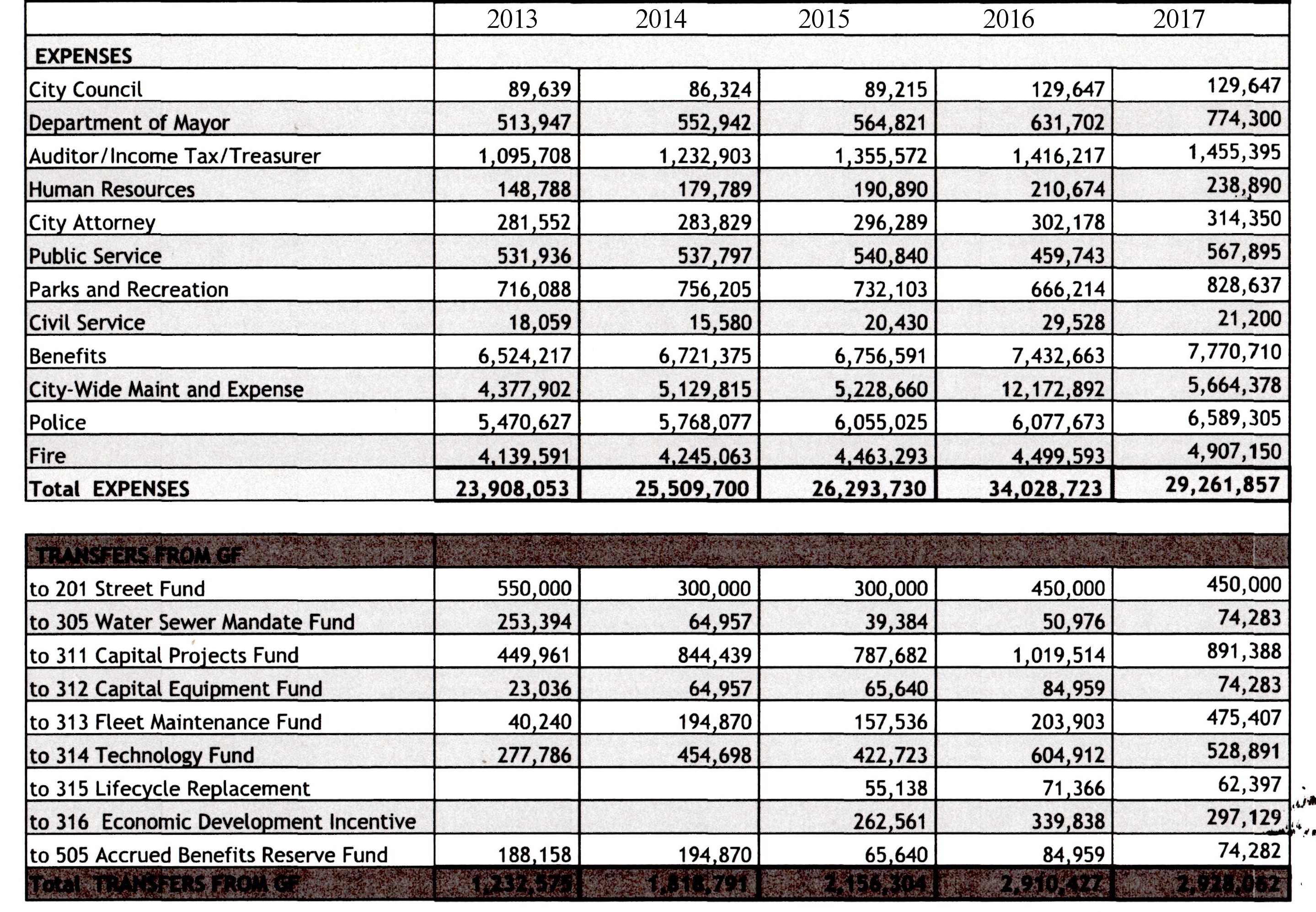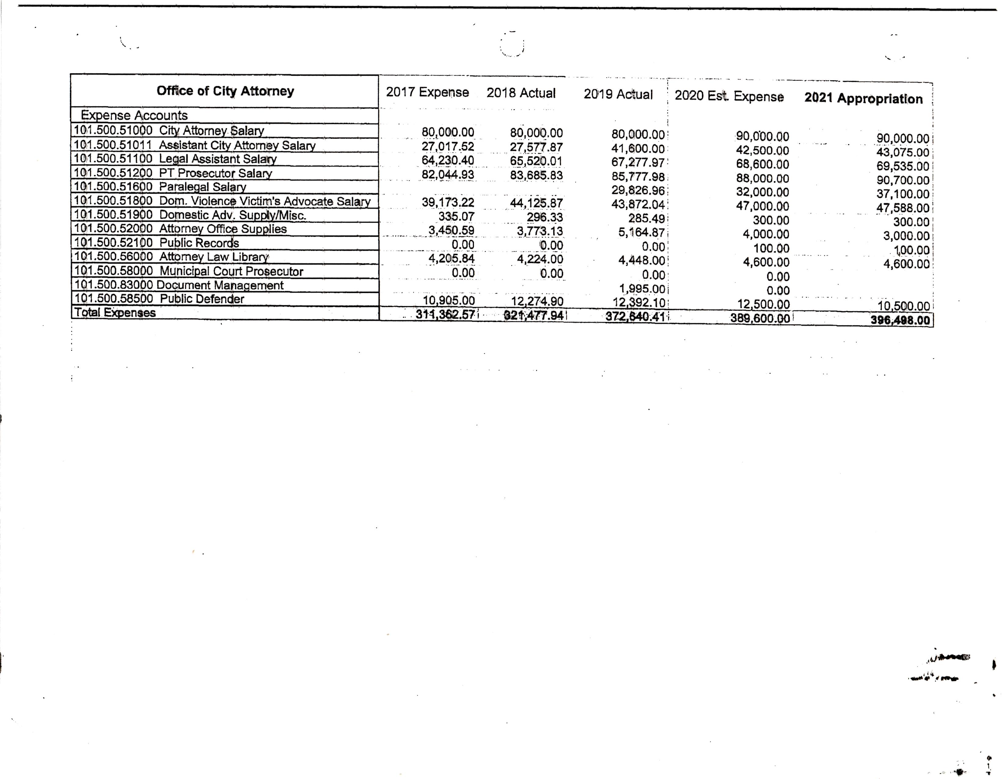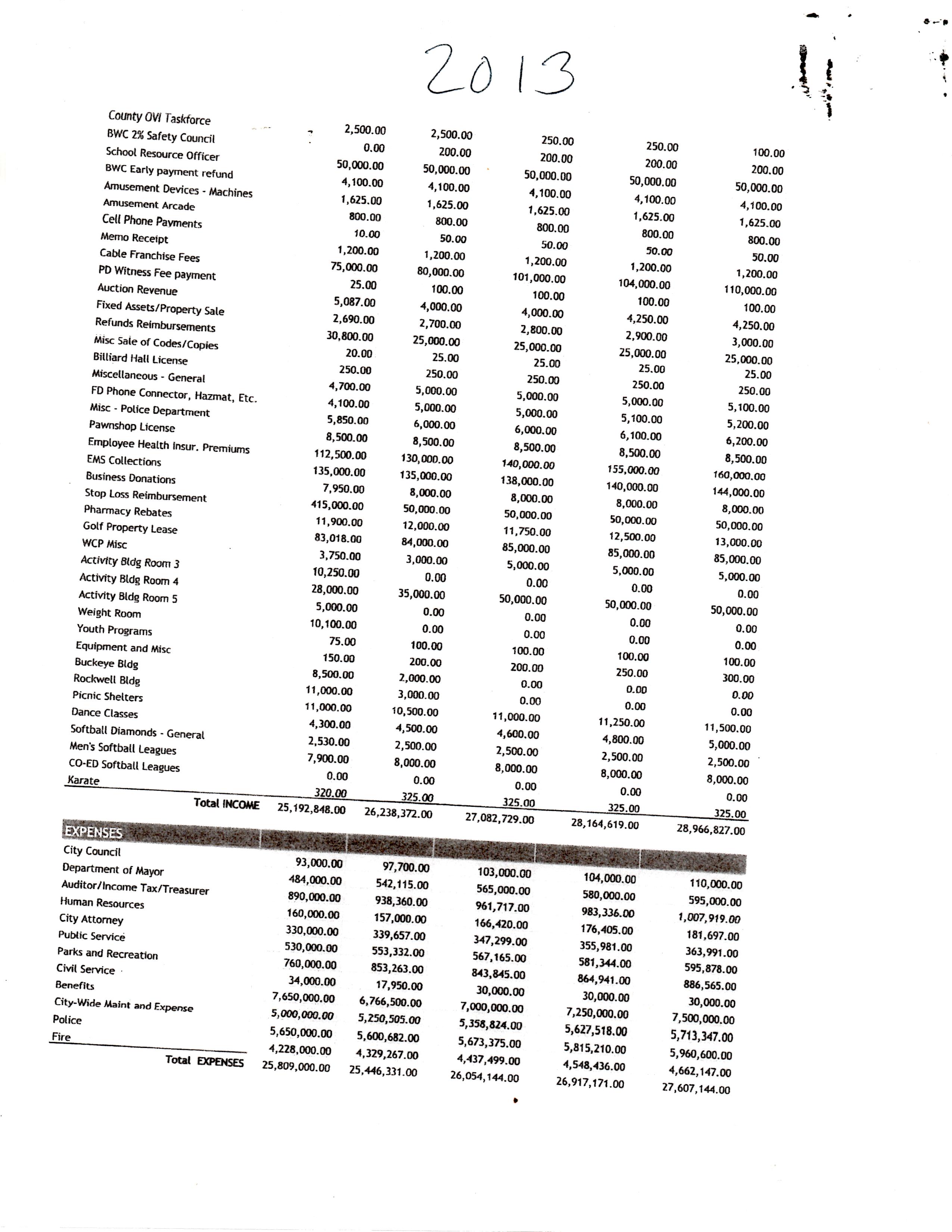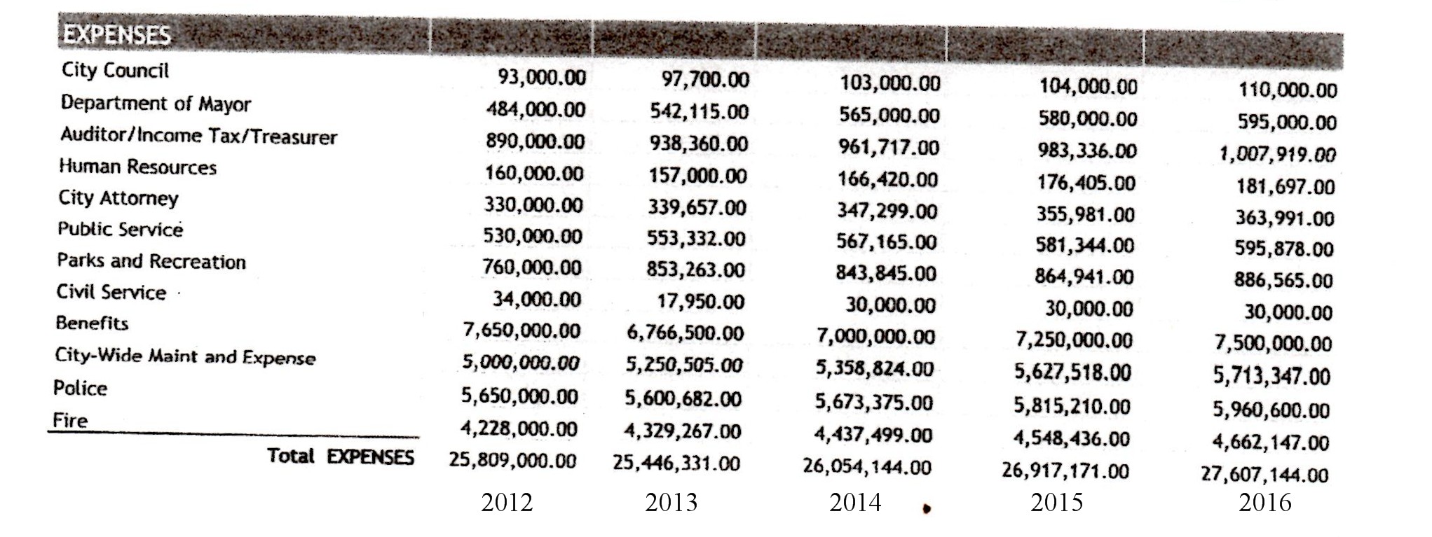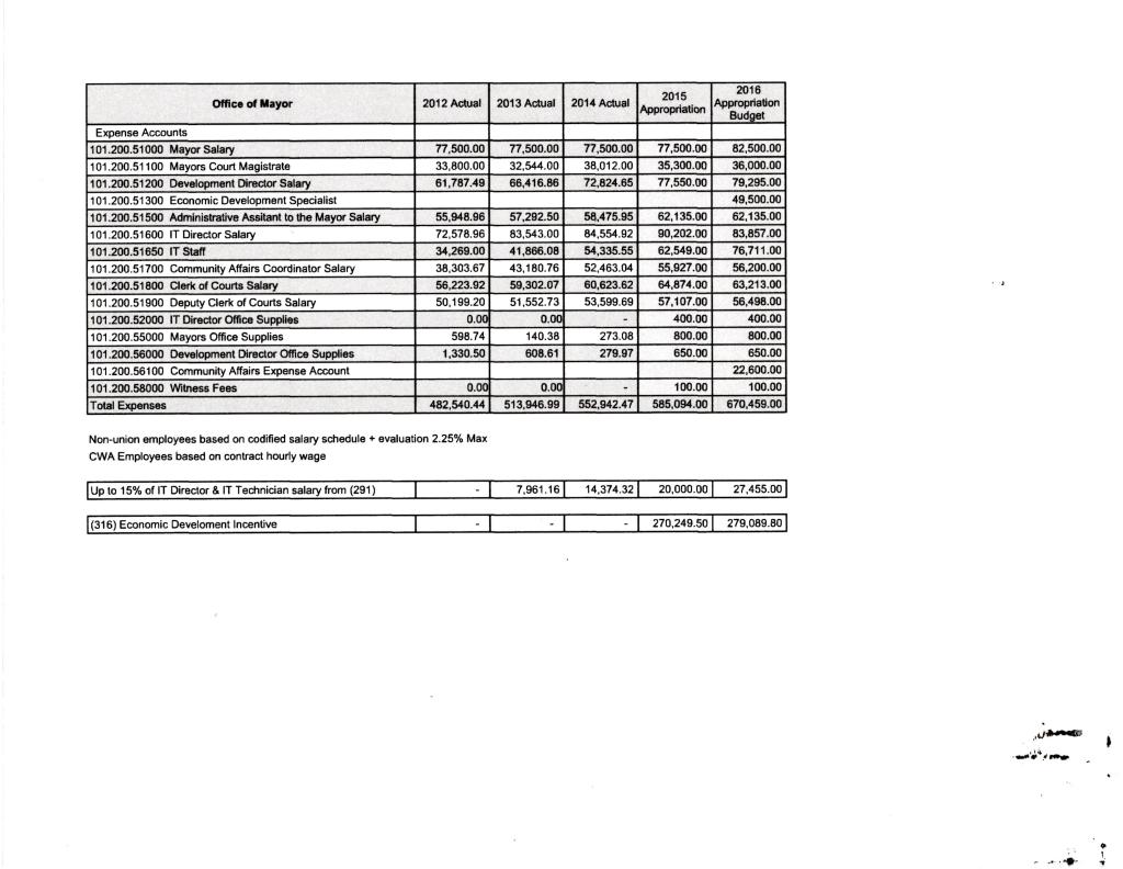 I’ll include every category of City Hall except Civil Service; there’s very little change in that and its not something anyone ever really cares about. Sometimes the sheets will include previous years and so those numbers will suffice instead of showing every single year. I’ll begin each category with the paperwork and then add my comments after the category.