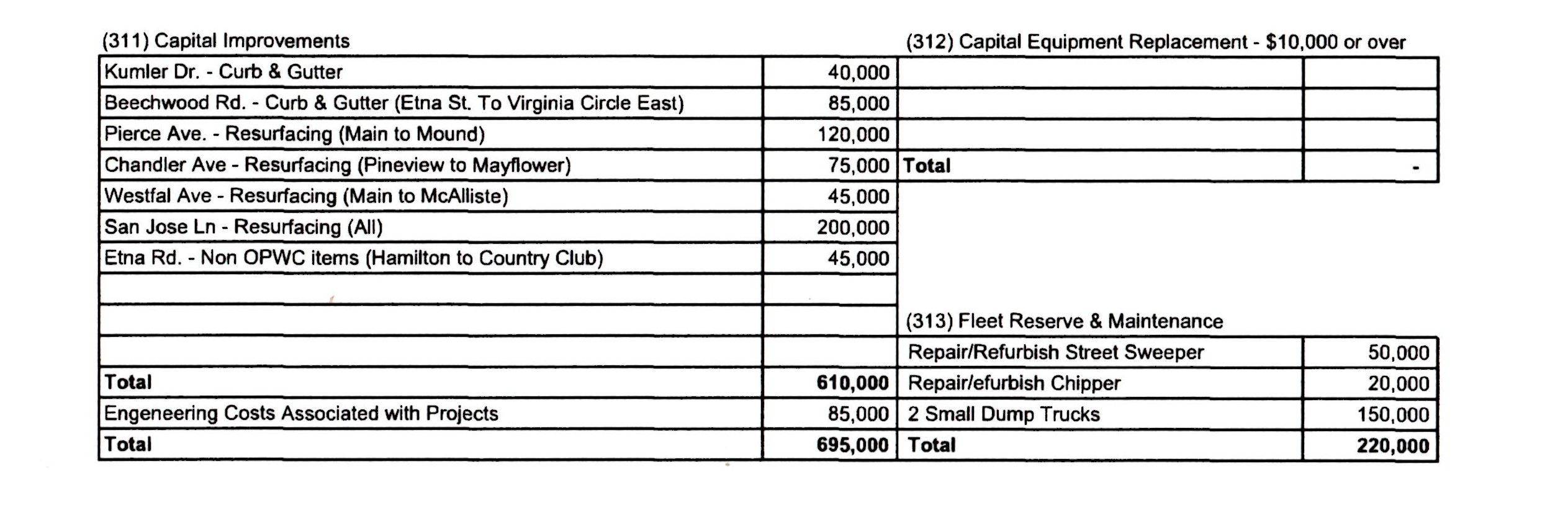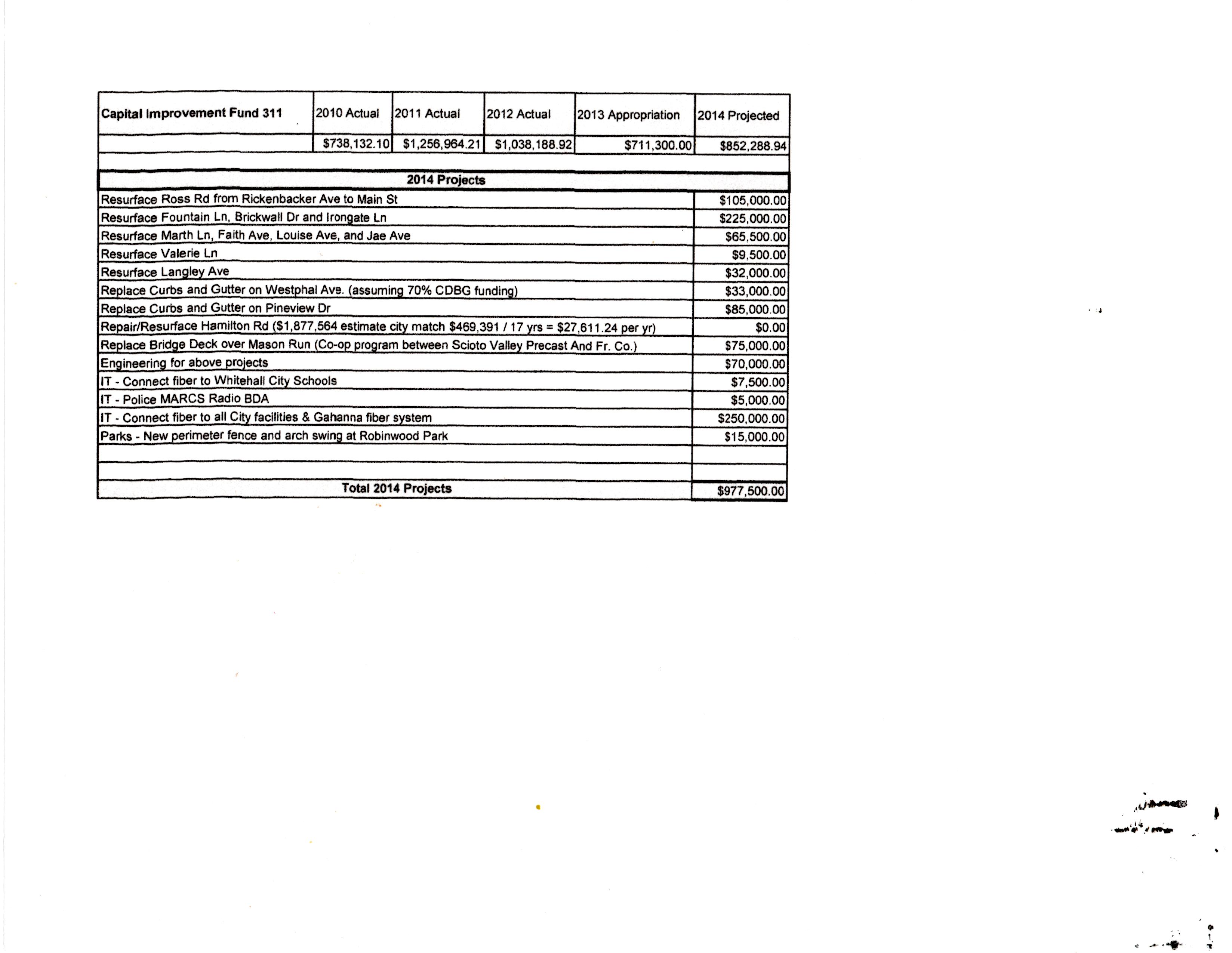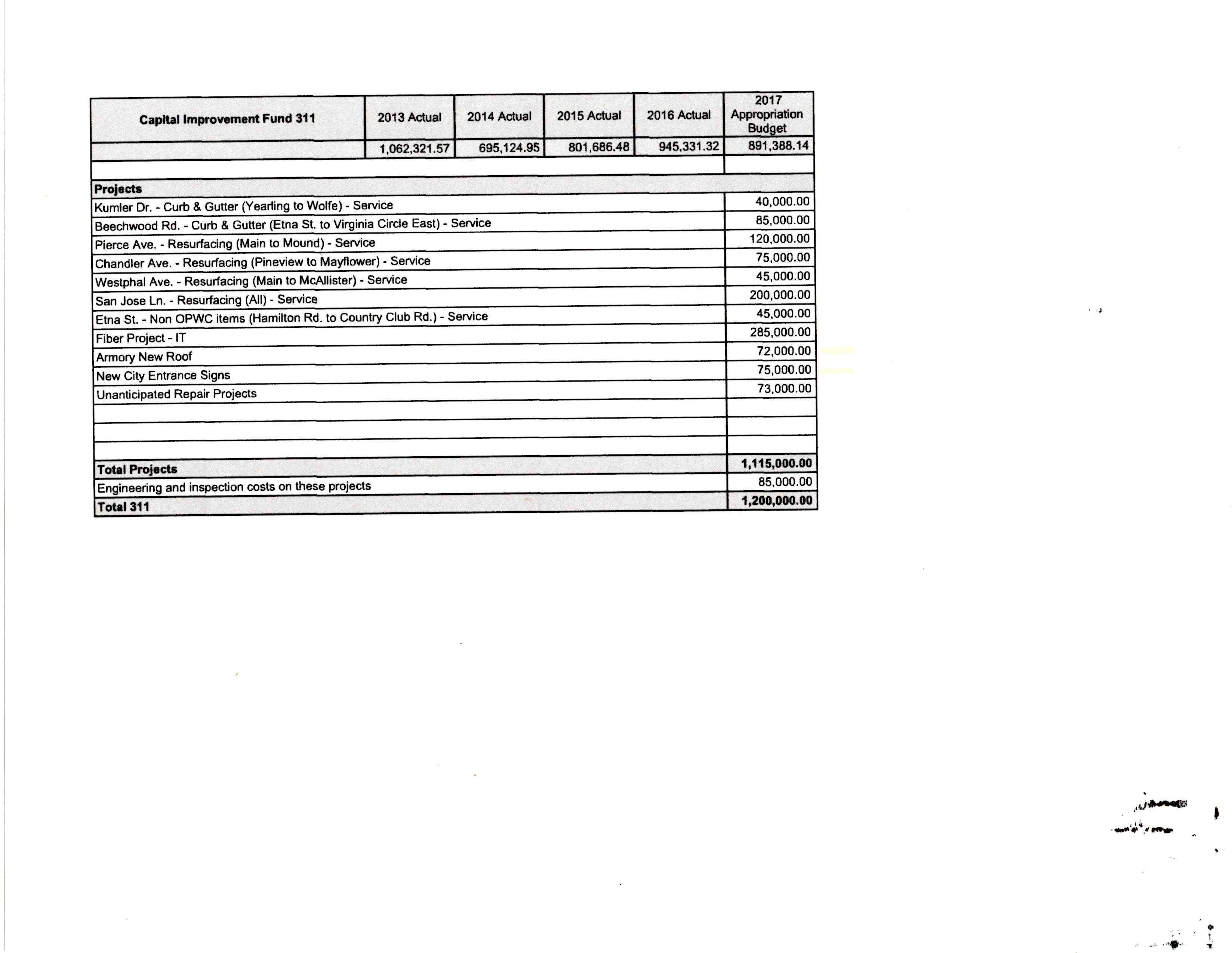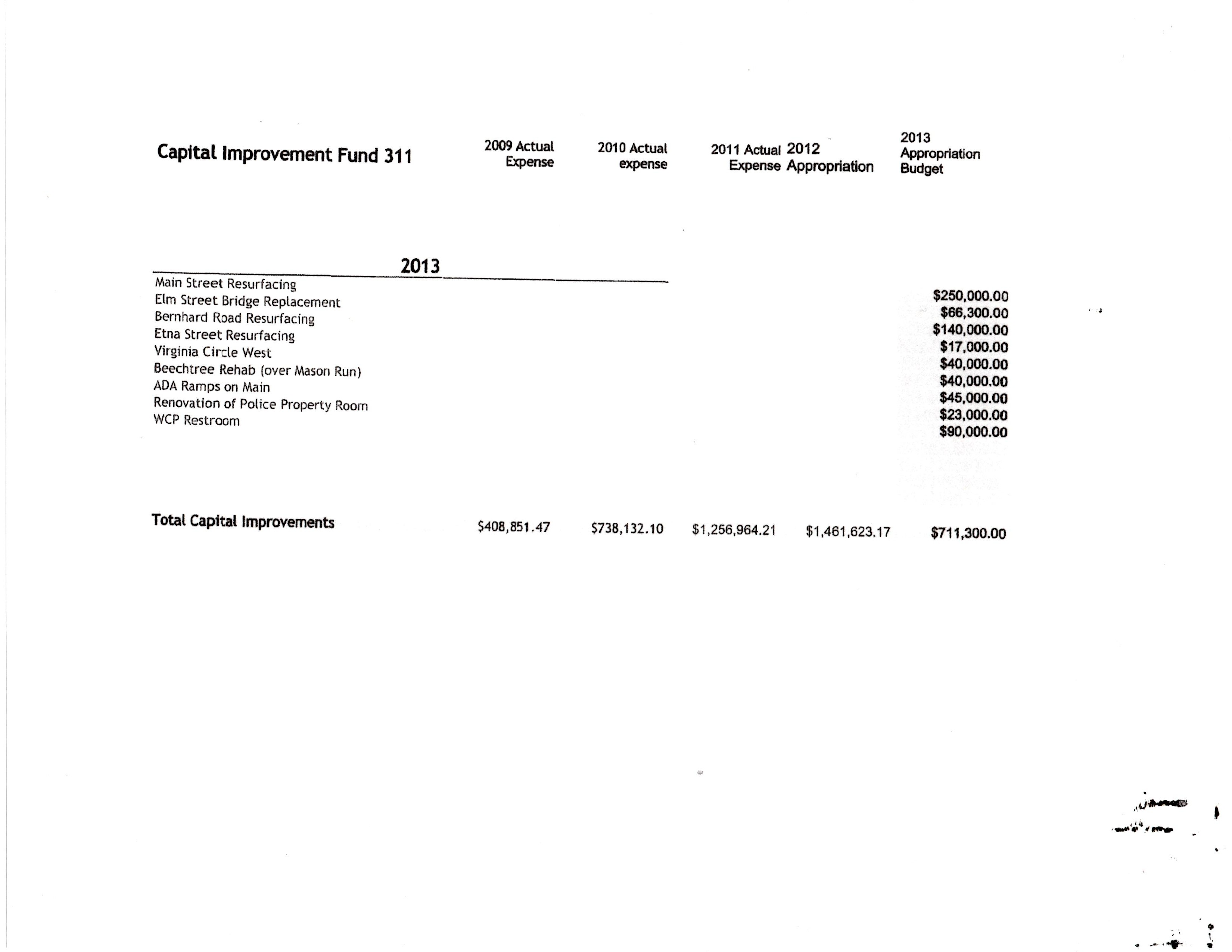 CAPITAL IMPROVEMENTS: