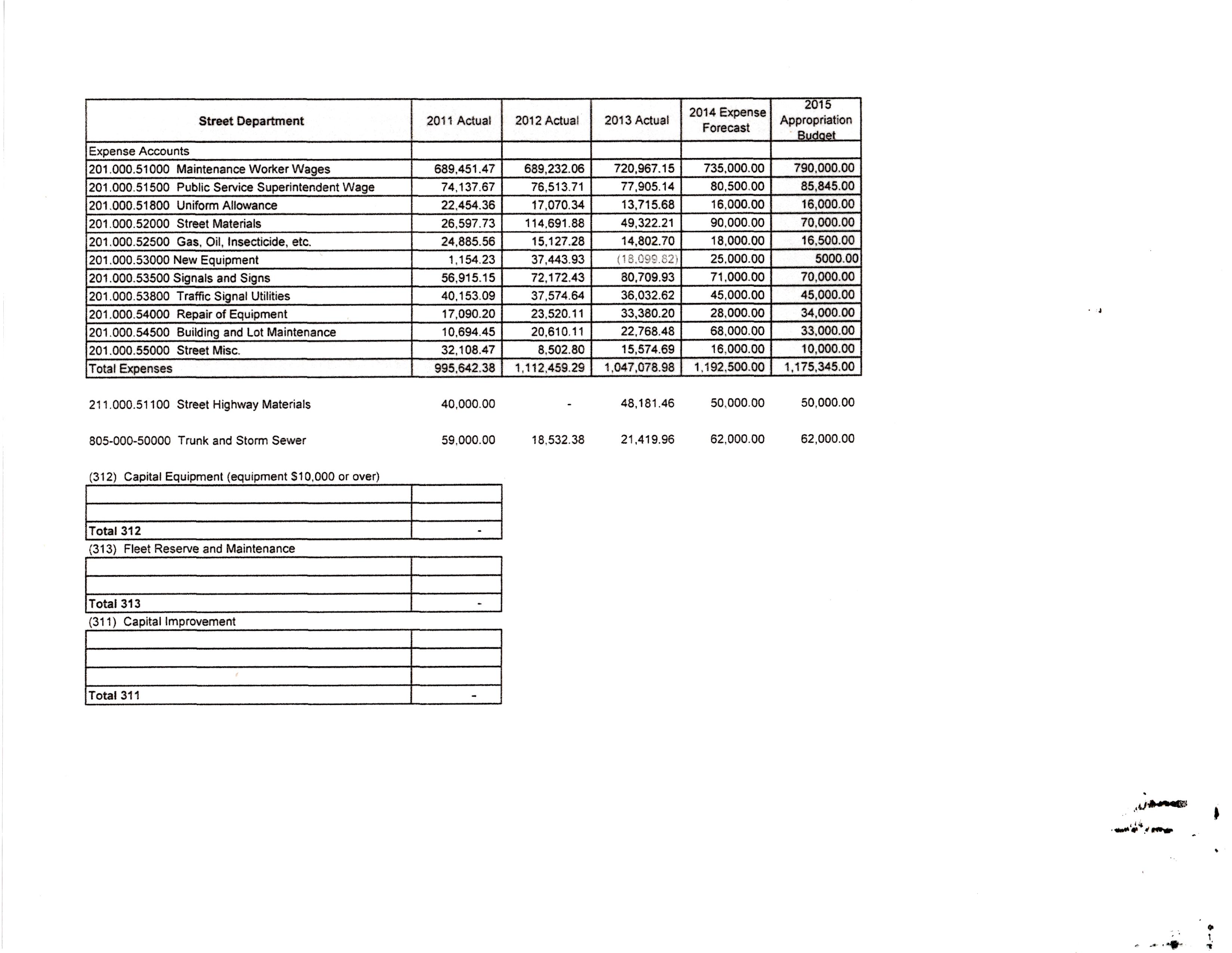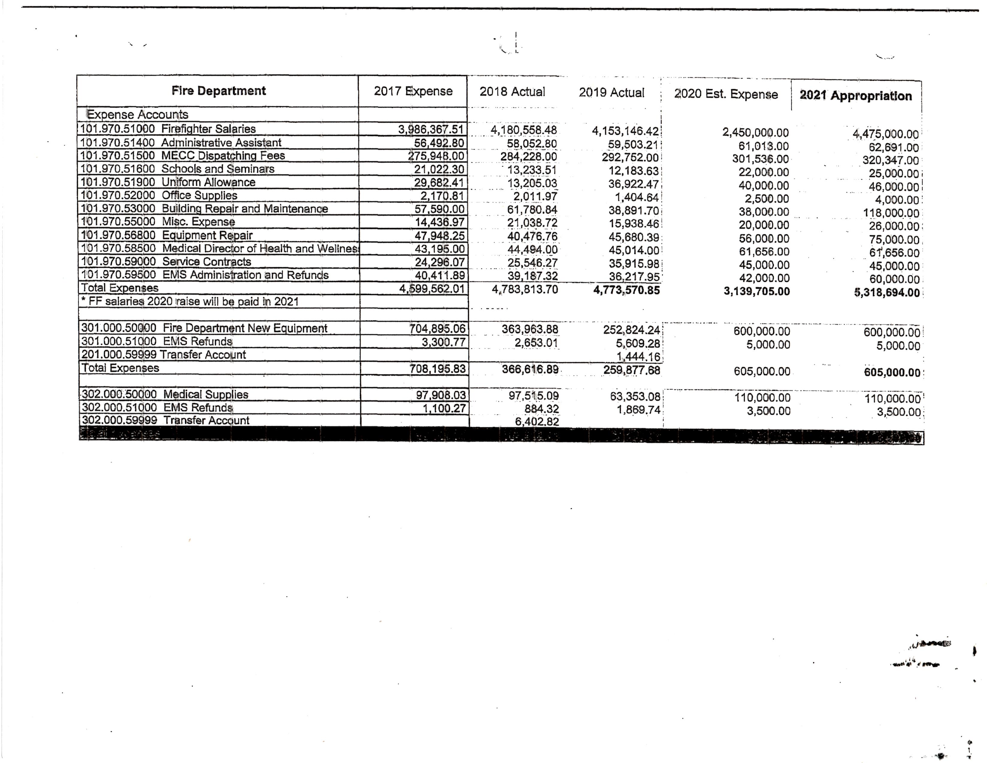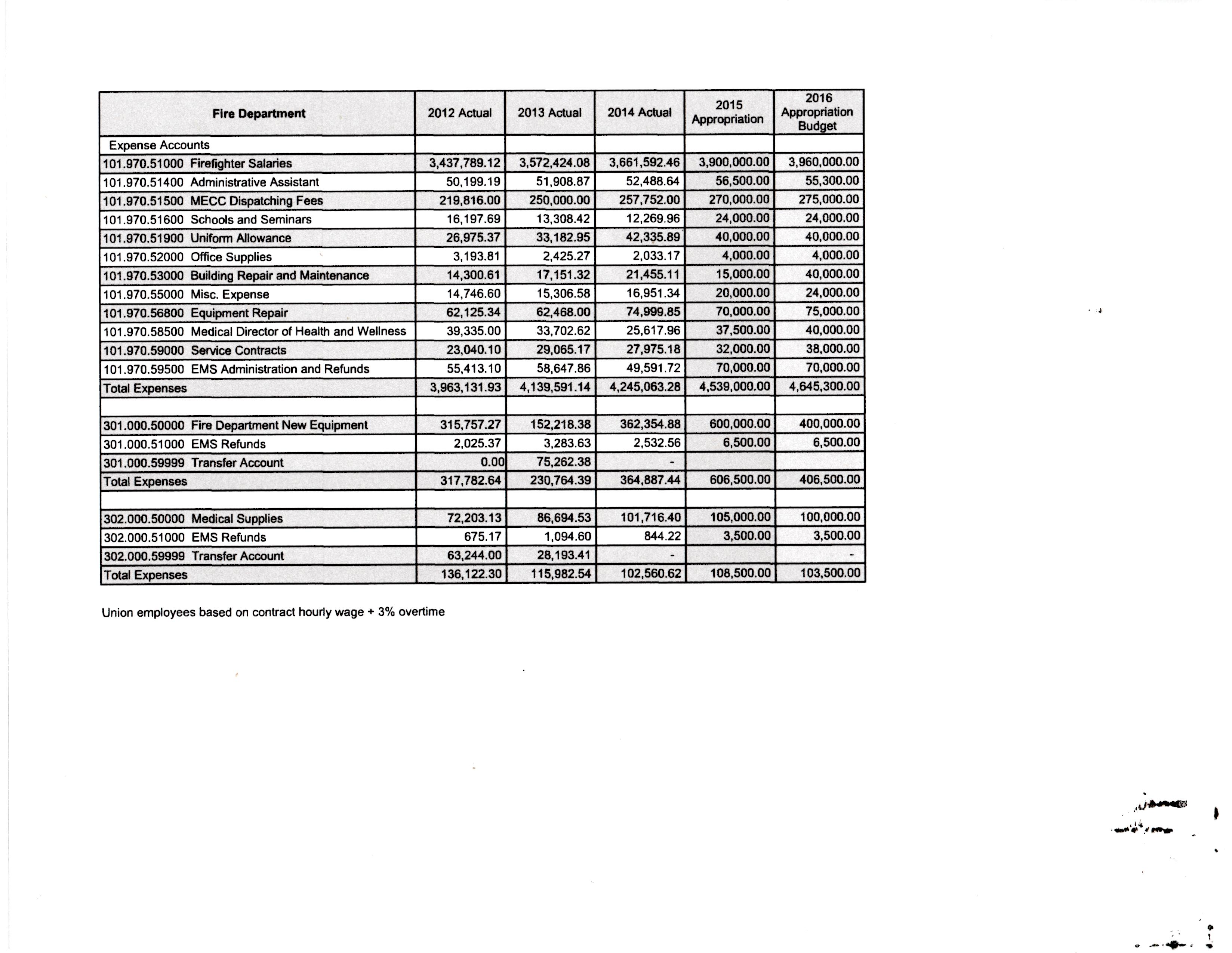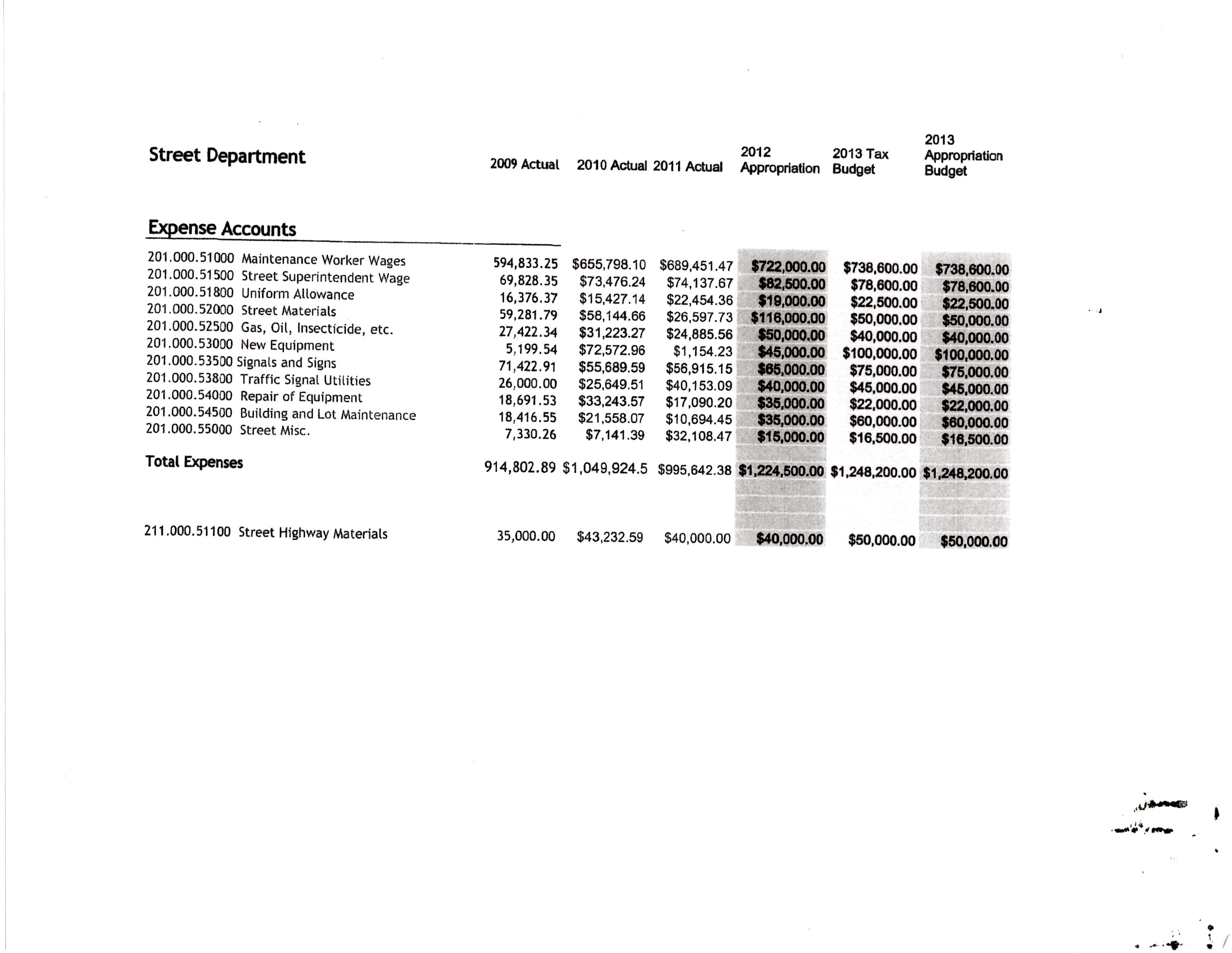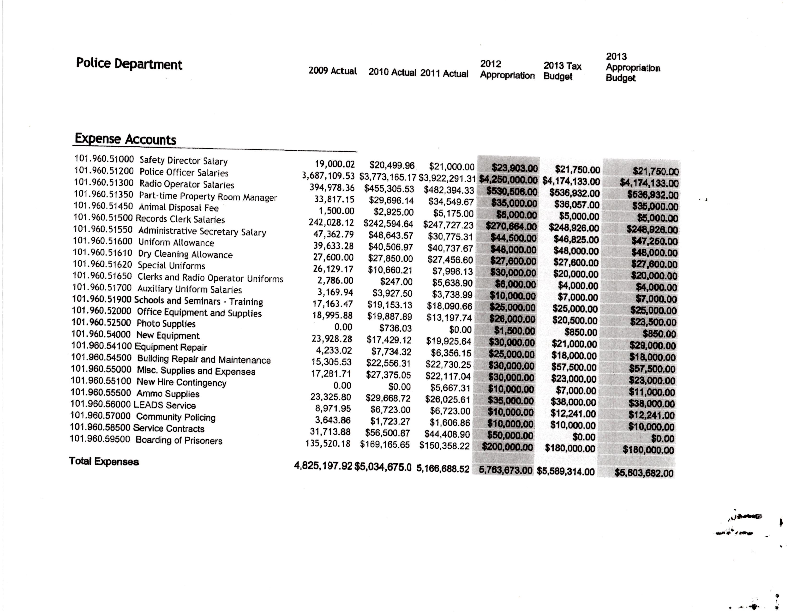 OVERALL DEPARTMENT EXPENSES (Remember, the 1st 3 columns are the most reliable as actual spending):