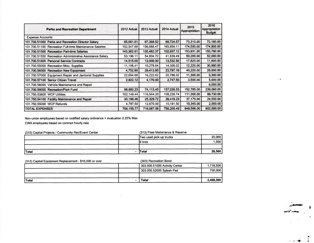 Parks and Rec’s spending is now over $1,000,000!!