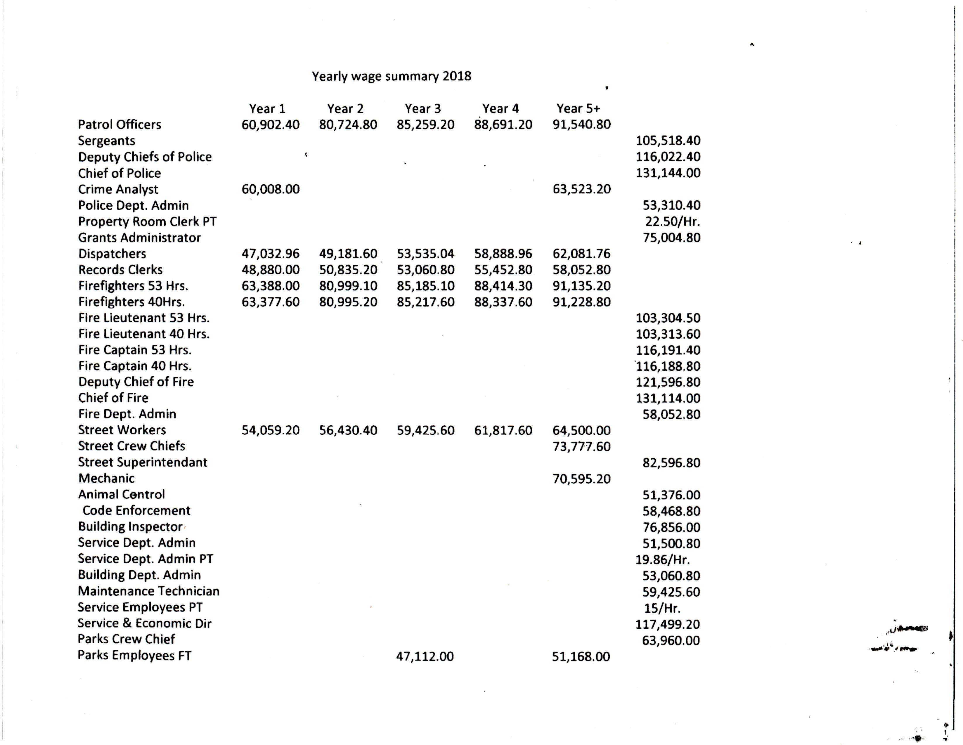 Here are the yearly wage summaries at City Hall: