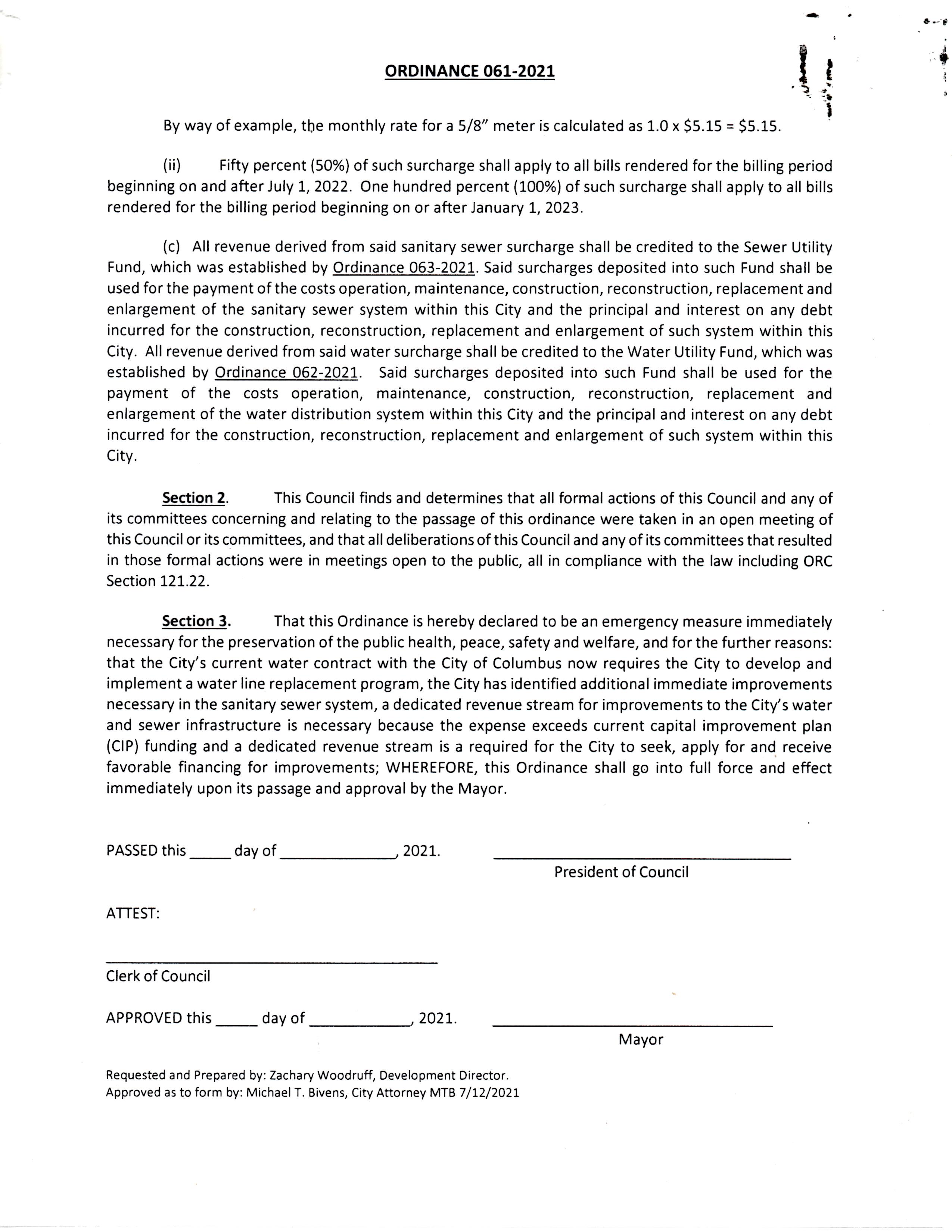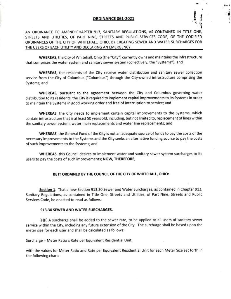 I am writing you today to implore your ‘no’ vote on Ordinance 61-2021, the utility surcharge legislation.